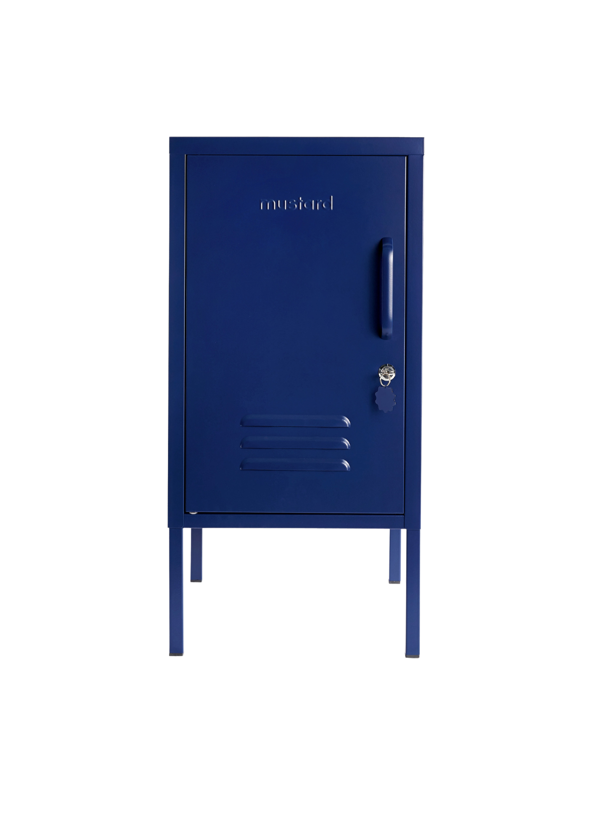 Im Inneren befinden sich zwei verstellbare Einlegeböden und ein praktischer Haken. An der Außenseite befinden sich ein Griff, ein Schloss, ein individueller Schlüsselring, Lüftungsschlitze und eine dezente Senfprägung, damit Sie wissen, dass es sich um ein echtes Produkt handelt. Die Tür öffnet sich nach links! Außerdem ist der gesamte Schrank glatt, matt und magnetisch. Auf Bildschirmen kommen unsere Farben nicht immer gut zur Geltung - bestellen Sie ein Muster, um zu sehen, wie es in Ihrem Raum aussieht.