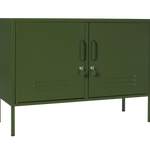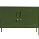Im Inneren finden Sie zwei verstellbare Einlegeböden und einen praktischen Haken in jeder Tür. An der Außenseite finden Sie Griffe, Schlösser, individuelle Schlüsselringe, Lüftungsschlitze, zwei Kabeldurchlässe, Wandbefestigungspunkte und eine dezente "Senf"-Prägung auf jeder Tür, damit Sie wissen, dass es sich um einen echten Schrank handelt. Außerdem ist der gesamte Schrank glatt, matt und magnetisch! Unsere Farben kommen auf Bildschirmen nicht immer gut zur Geltung - bestellen Sie ein Muster, um zu sehen, wie es in Ihrem Raum aussieht.