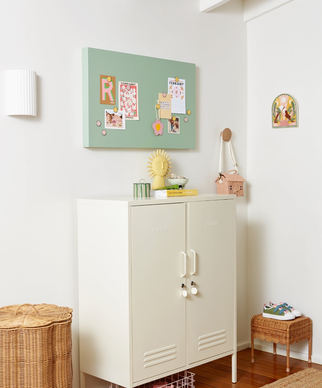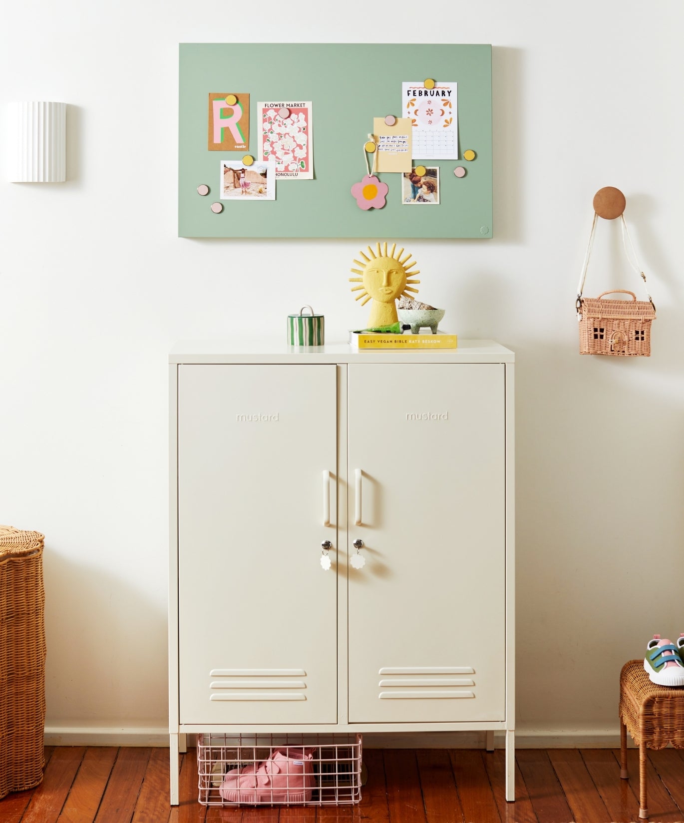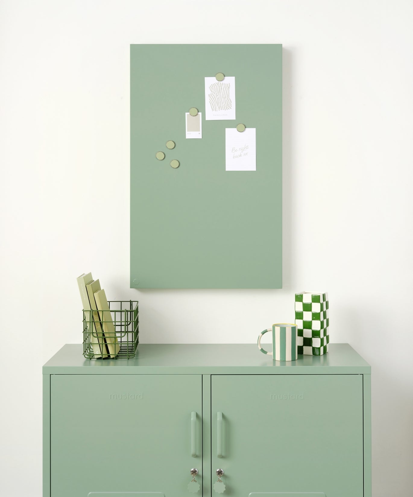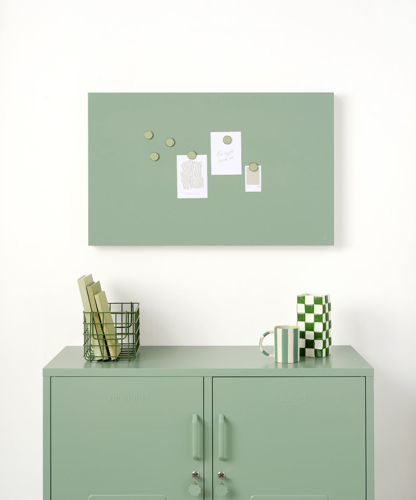 Die glatte, magnetische Oberfläche des Storyboard ist aus demselben pulverbeschichteten Stahl wie unsere Schließfächer gefertigt. Es kann im Hoch- oder Querformat aufgehängt werden (wie ein Kunstwerk!) und wird mit unserem charakteristischen, geprägten Mustard geliefert, damit Sie wissen, dass es sich um ein echtes Produkt handelt. Und das Beste daran? Es ist keine Montage erforderlich!