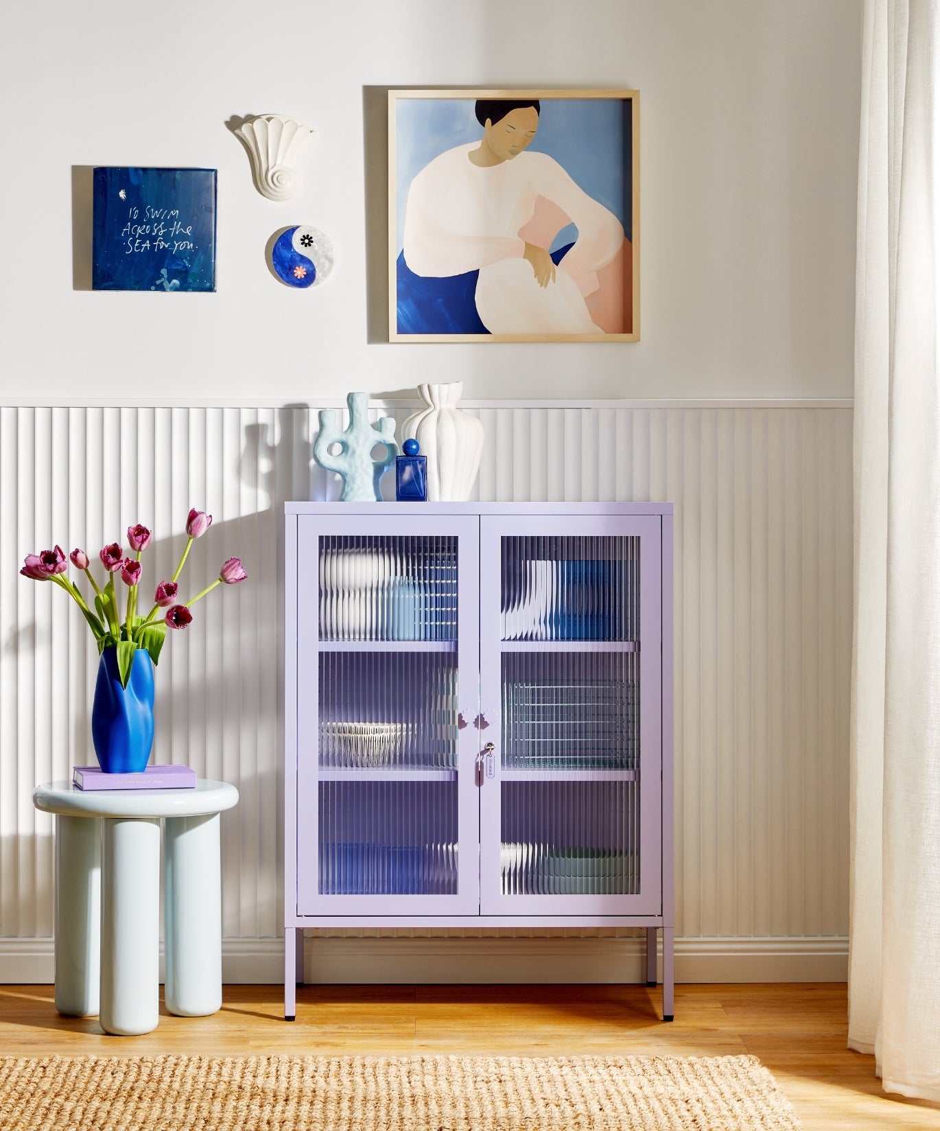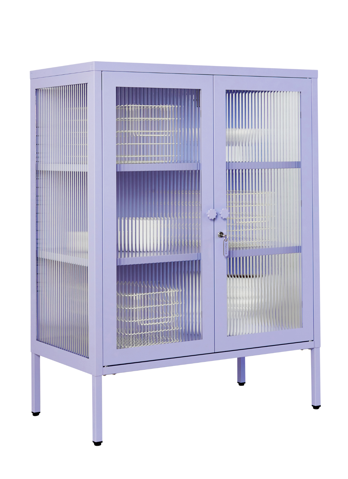 Es lo último en armarios para bebidas, buffets de cocina o aparadores, con cristal estriado para difuminar las líneas entre ocultar y revelar. ¿Un pequeño secreto? Todo queda mejor detrás de un cristal estriado.