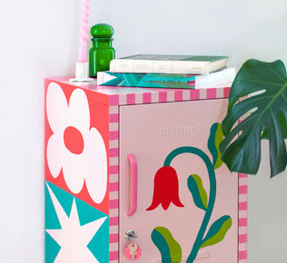 Aunque muchos artistas ya han dado su propio toque a un armario Mustard , el bordado es sin duda la primera vez. Pero si alguien podía hacerlo, sabíamos que era Chloe, de Cotton Clara. "Me daba un poco de miedo equivocarme y estropear un mueble tan bonito", se ríe Chloe. Pero como artesana experimentada, estaba preparada para el reto. Alerta: ¡tenía que usar gafas de seguridad y un taladro!