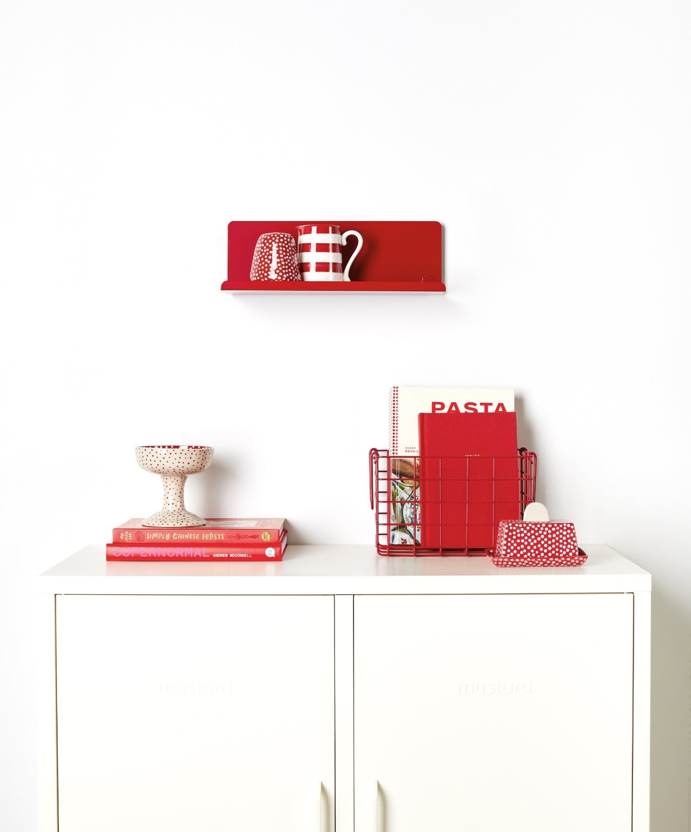 El Ledge está fabricado con el mismo acero con recubrimiento en polvo que nuestras taquillas, en nuestro característico arco iris de colores. Está disponible en dos tamaños (pequeño y grande) y puede girarse y colgarse en ambos sentidos. Es magnética y lleva nuestro característico medallón Mustard en relieve, para que sepas que es auténtica.