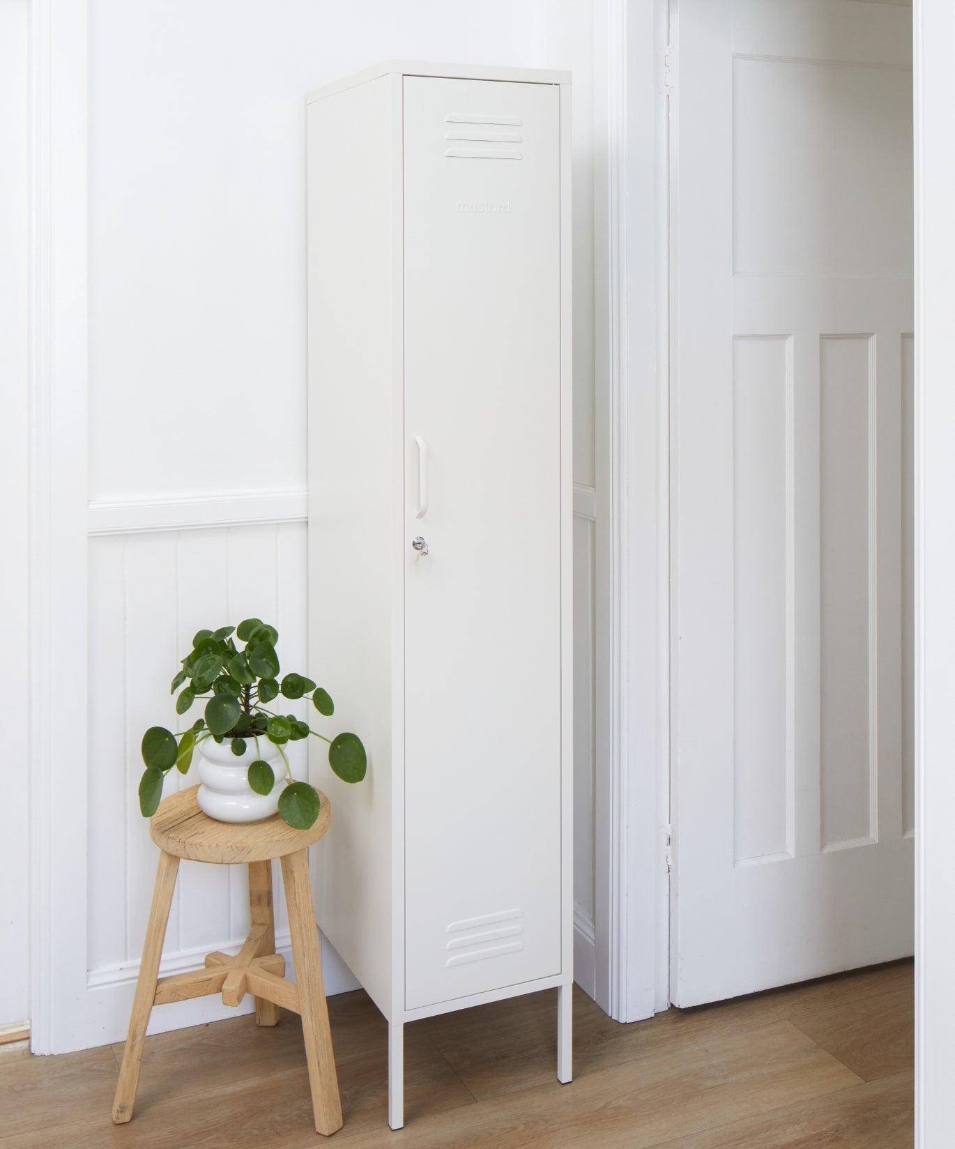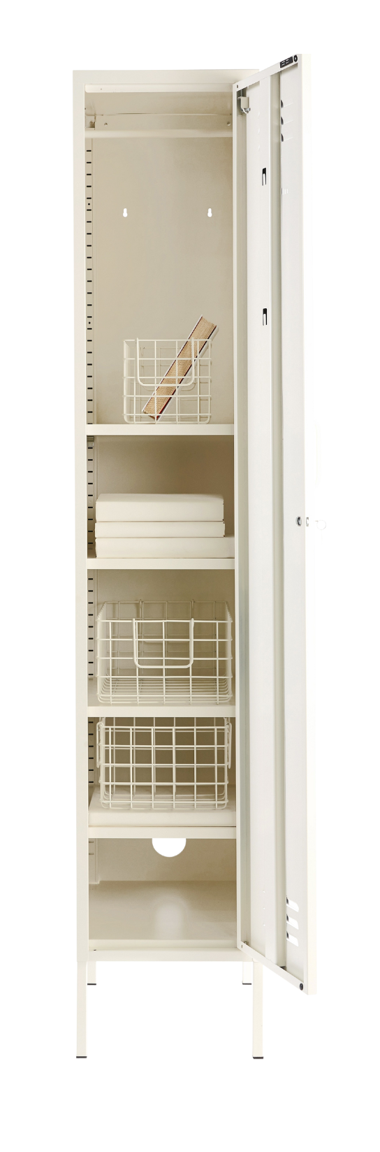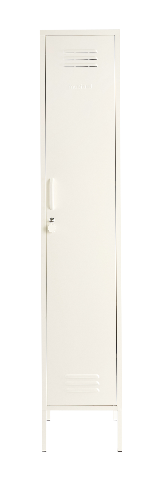 En el interior, encontrarás una barra para colgar extraíble, cuatro estantes ajustables y dos prácticos ganchos. En el exterior, encontrarás un asa, una cerradura, un llavero personalizado, rejillas de ventilación y un sutil "mostaza" en relieve, para que sepas que es de verdad. Además, ¡toda la taquilla es lisa, mate e imantada! Las pantallas no siempre hacen justicia a nuestros colores. Pida una muestra para ver cómo queda en su espacio.