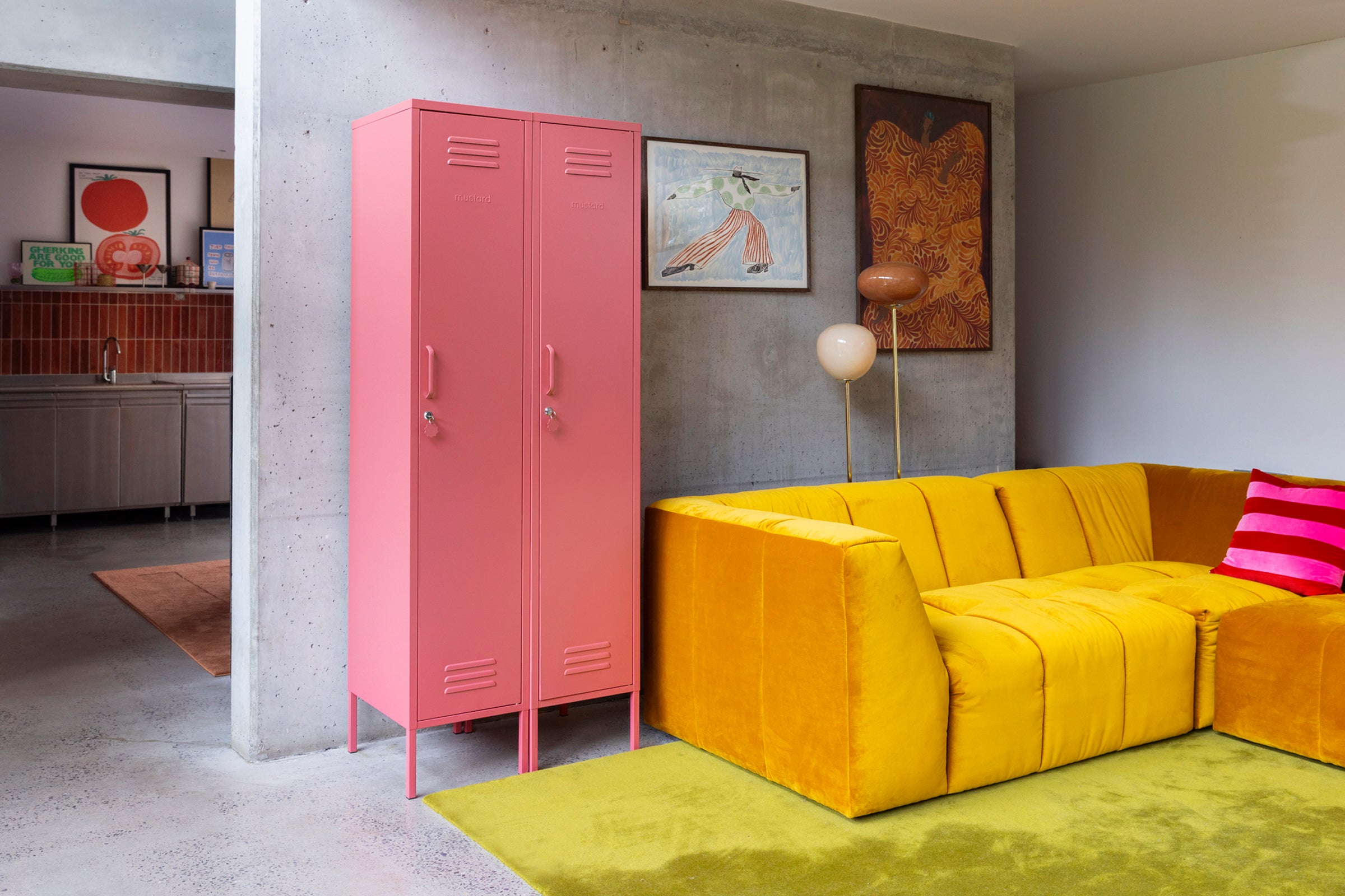 Cómo hacerlo: atrévete con dos o más Mustard que contrasten. Las grandes superficies de color crean un gran impacto, y las obras de arte sirven para armonizarlo todo.
