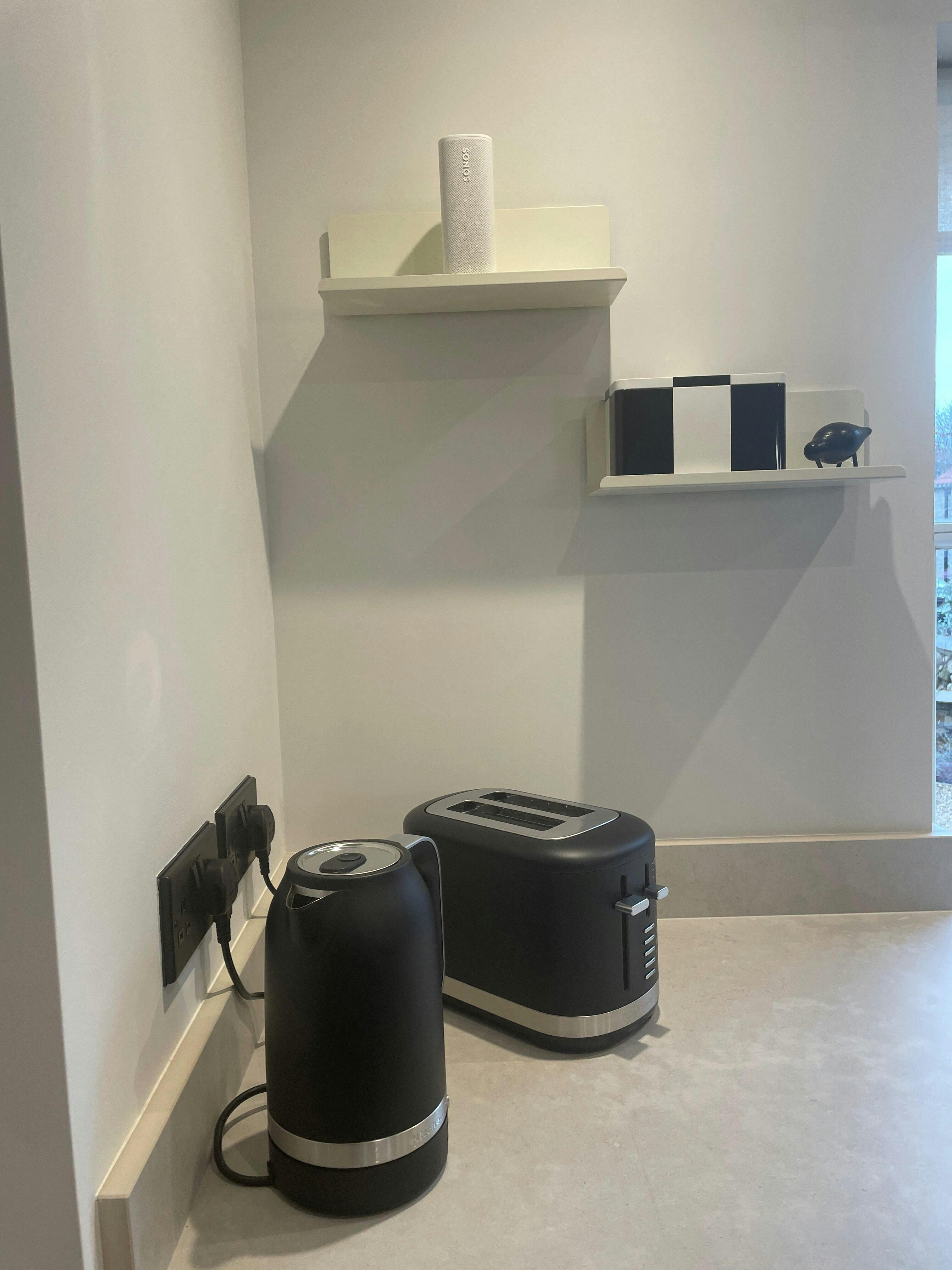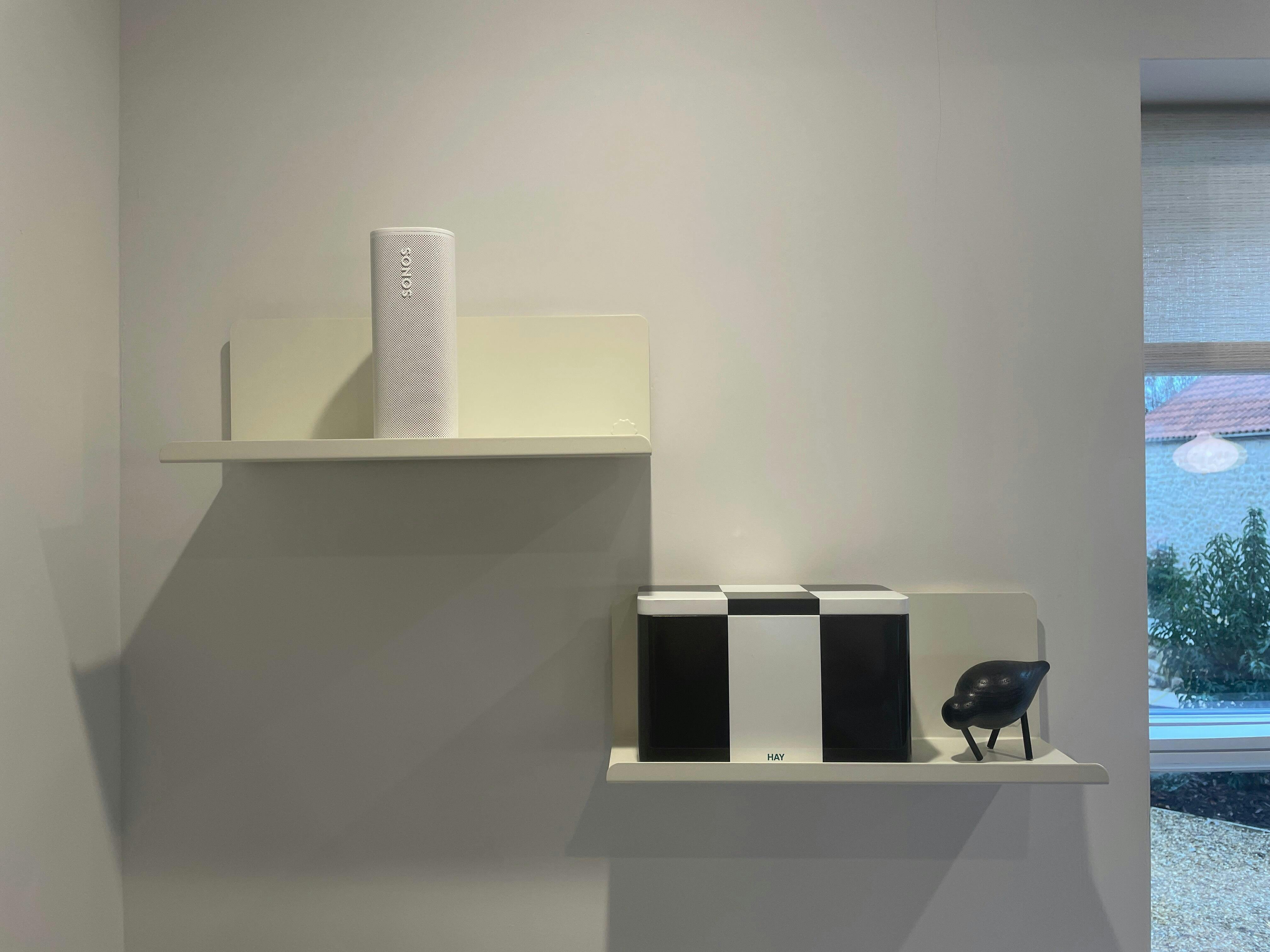 Después de comprar la muestra en color tiza y pizarra, pedimos dos estantes pequeños en color tiza. El color combina perfectamente con nuestra cocina-salón diáfana. Son muy bonitos y fáciles de instalar, nos encantan. Hubo un pequeño problema con uno de ellos, que tenía una mella, pero el equipo de atención al cliente lo solucionó de forma muy rápida y eficaz enviándonos uno de repuesto.