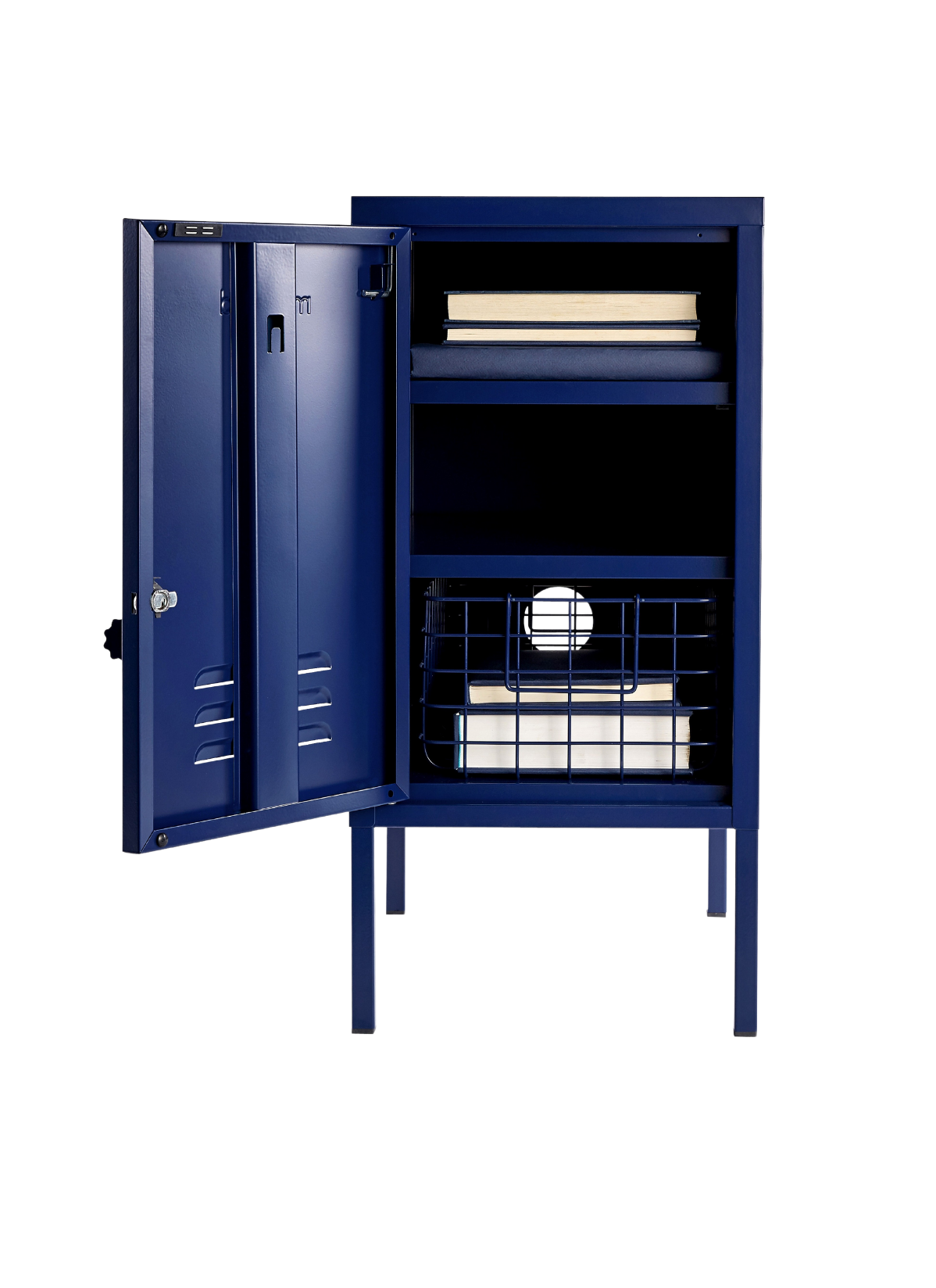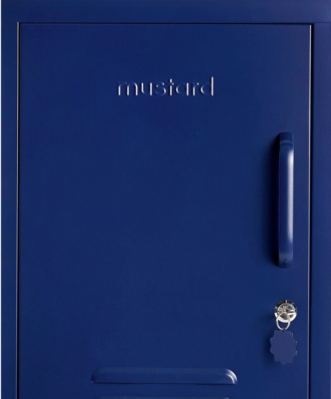 En el interior, hay dos estantes ajustables y un práctico gancho. En el exterior, encontrarás un asa, una cerradura, un llavero personalizado, rejillas de ventilación y un sutil "mostaza" en relieve, para que sepas que es de verdad. La puerta se abre hacia la izquierda. Además, toda la taquilla es lisa, mate y magnética. Las pantallas no siempre hacen justicia a nuestros colores. Pida una muestra para ver cómo queda en su espacio.