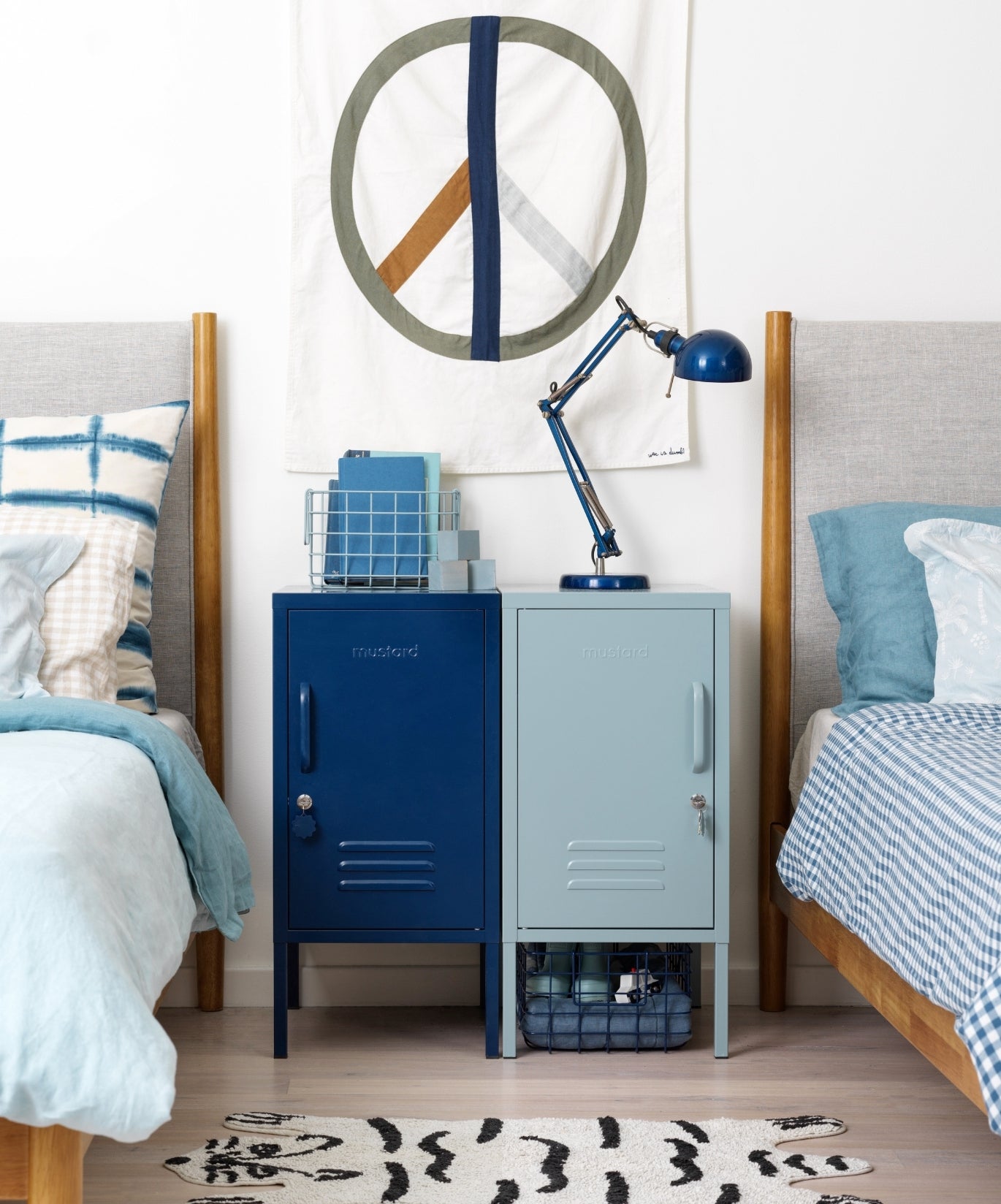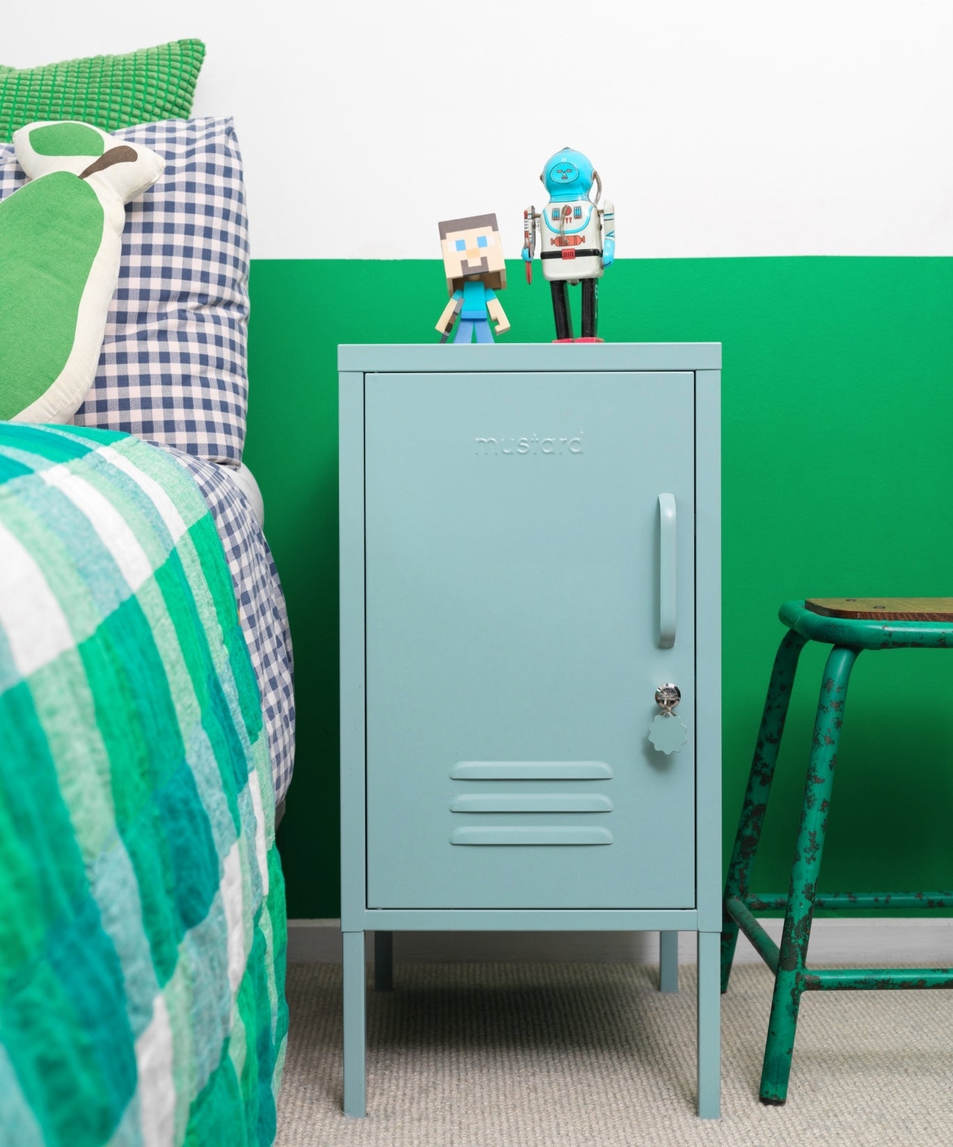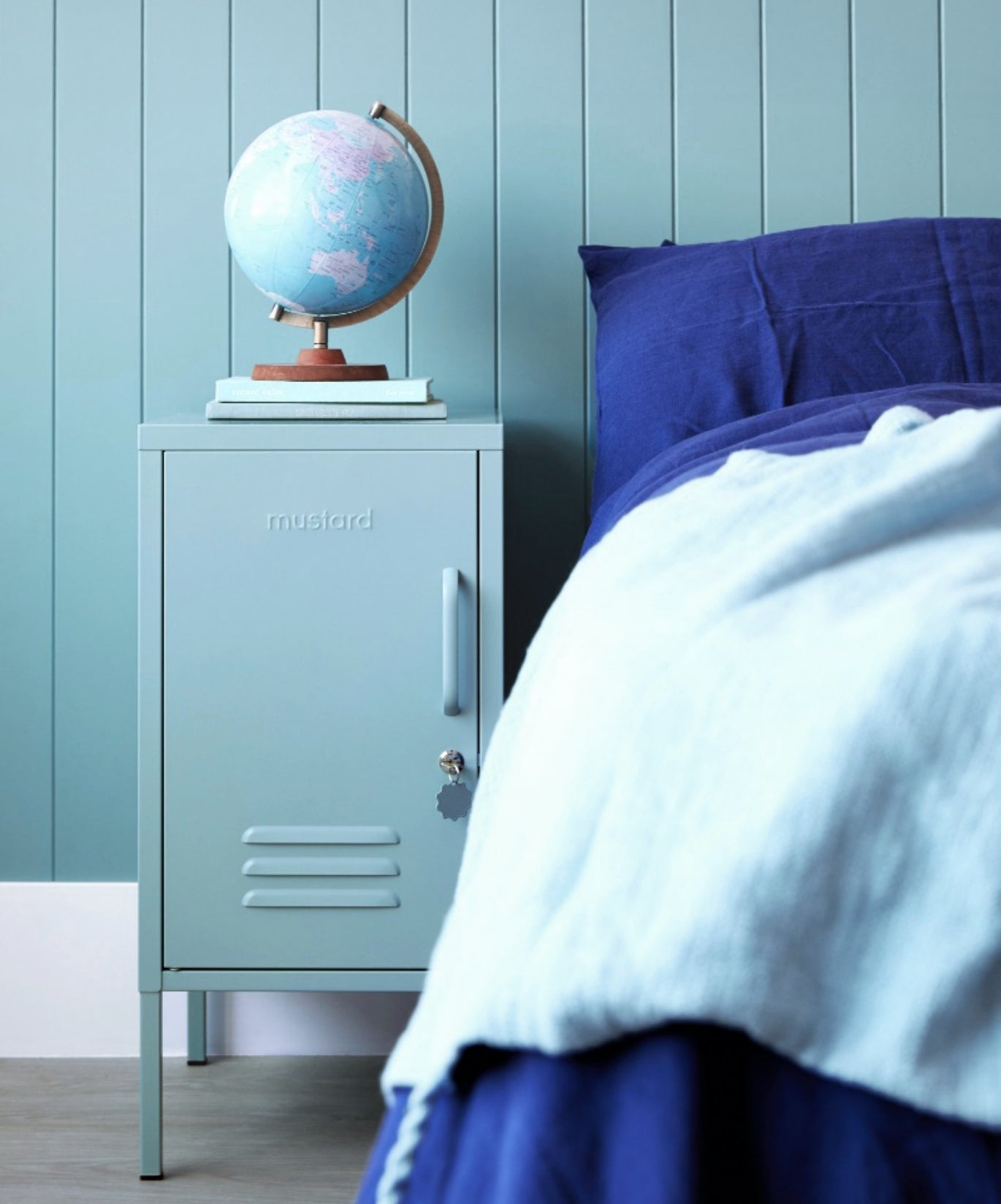 En el interior, hay dos estantes ajustables y un práctico gancho. En el exterior, encontrarás un asa, una cerradura, un llavero personalizado, rejillas de ventilación y un sutil "mostaza" en relieve, para que sepas que es de verdad. La puerta se abre hacia la izquierda. Además, toda la taquilla es lisa, mate y magnética. Las pantallas no siempre hacen justicia a nuestros colores. Pida una muestra para ver cómo queda en su espacio.