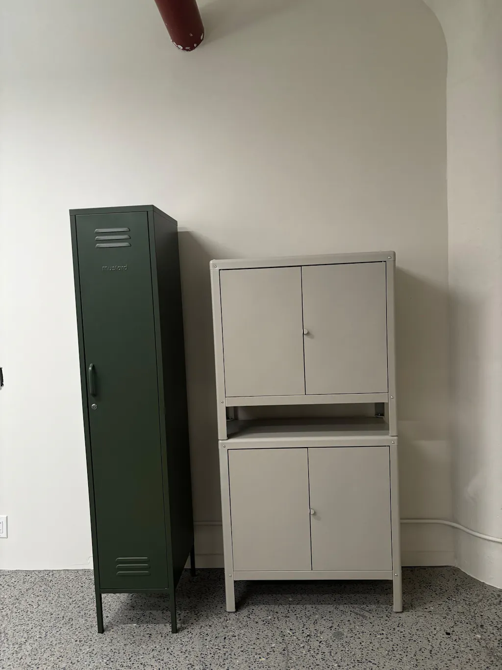 En el interior, encontrarás una barra para colgar extraíble, cuatro estantes ajustables y dos prácticos ganchos. En el exterior, encontrarás un asa, una cerradura, un llavero personalizado, rejillas de ventilación y un sutil "mostaza" en relieve, para que sepas que es de verdad. Además, ¡toda la taquilla es lisa, mate e imantada! Las pantallas no siempre hacen justicia a nuestros colores. Pida una muestra para ver cómo queda en su espacio.