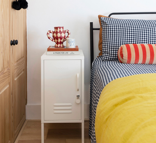Bien que de nombreux artistes aient déjà mis leur touche personnelle sur un casier Mustard , la broderie est sans aucun doute une première. Mais si quelqu'un pouvait le faire, nous savions que c'était Chloe de Cotton Clara. "J'étais un peu terrifiée à l'idée de me tromper et d'abîmer un très beau meuble", dit Chloé en riant. Mais en tant que créatrice chevronnée, elle était prête à relever le défi. Alerte au spoiler : il s'agissait de lunettes de protection et d'une perceuse !