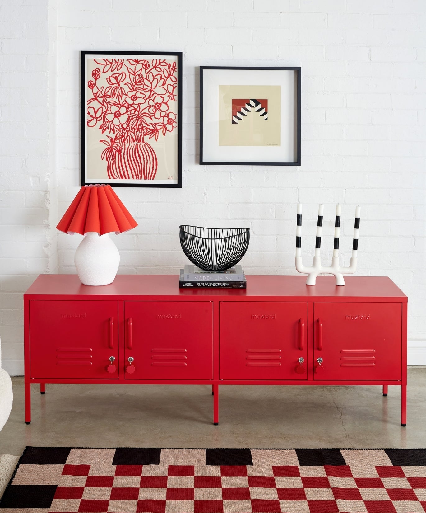 À l'intérieur, vous trouverez quatre étagères réglables et un crochet pratique à l'intérieur de chaque porte. À l'extérieur, vous trouverez deux trous pour les câbles, deux points de fixation murale, quatre portes verrouillables, des porte-clés personnalisés, des bouches d'aération et un subtil gaufrage "moutarde" sur chaque porte, pour que vous sachiez qu'il s'agit d'une véritable affaire. De plus, l'ensemble du casier est lisse, mat et magnétique ! Les écrans ne rendent pas toujours justice à nos couleurs - commandez un échantillon pour voir ce que cela donne dans votre espace.