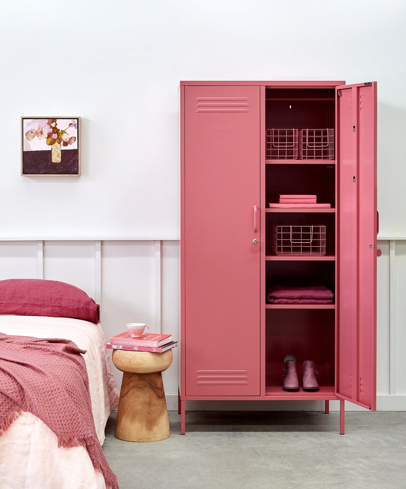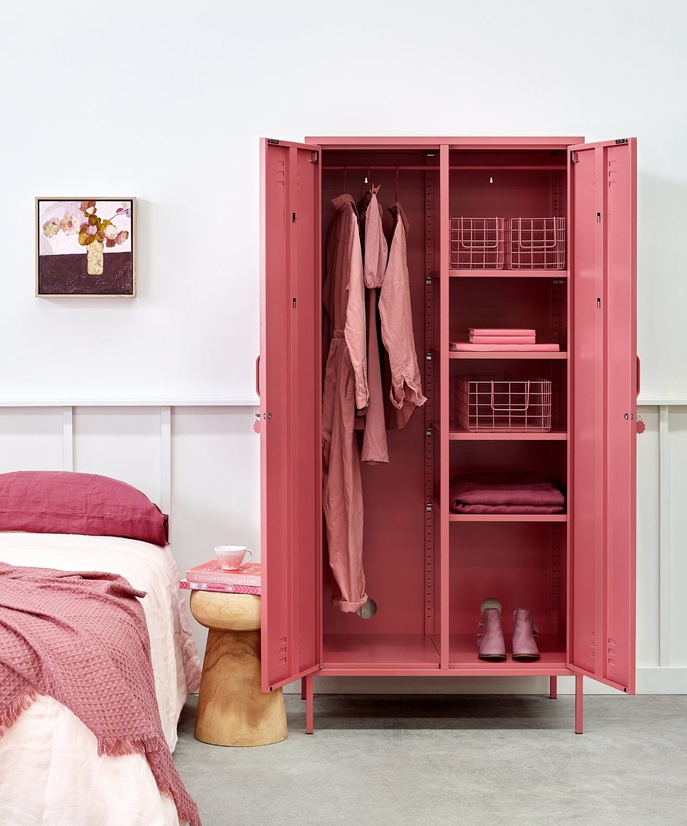 Le Twinny a été conçu avec une garde-robe à l'esprit, mais comme tous nos casiers, il porte de nombreuses (belles) casquettes. Il offre un espace de rangement généreux, est entièrement réglable et fait toujours bonne figure.
