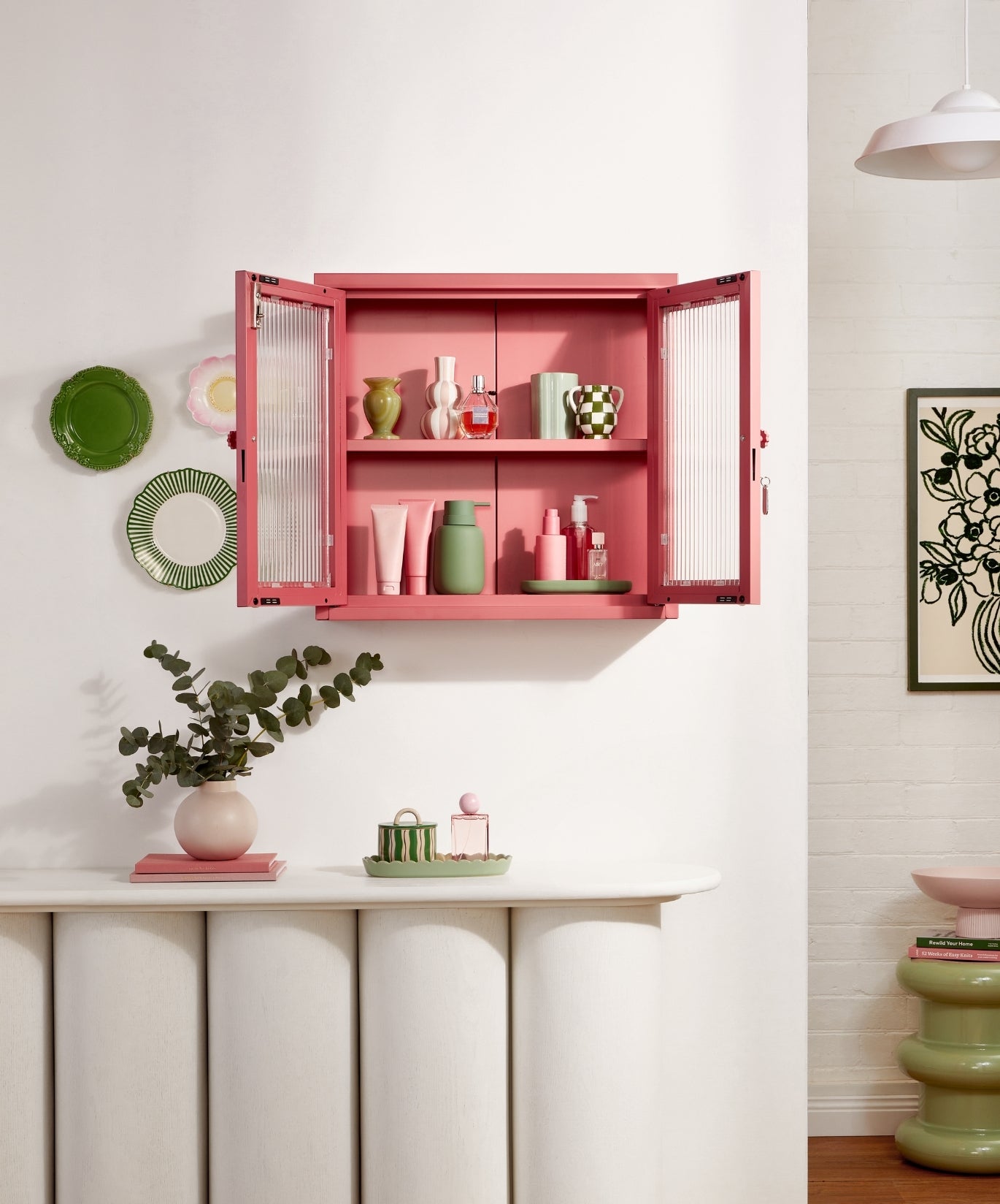 Minuscolo e funzionale, The Kit è un armadietto a muro con un tocco retrò. È l'intero Kit and caboodle!