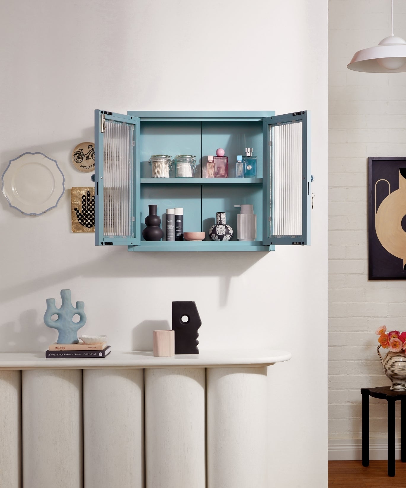 Adoro il colore ed è un ottimo sistema di archiviazione per il bagno di un piccolo appartamento. Tiene in ordine tutti i miei articoli da toeletta e il trucco. Ho chiesto a un falegname qualificato di montarlo alla parete e anche per lui è stato un po' difficile perché la sagoma sembrava fuori posto. Si prega di considerare un sistema di montaggio migliore. Sono anche deluso dal fatto che, dato il prezzo, sia stato necessario acquistare separatamente gli ancoraggi a parete. Sono anche contento di aver acquistato un ripiano in più per sfruttare al meglio lo spazio del mobile. Ho finito per applicare una pellicola smerigliata da Kmart sul vetro a coste perché quest'ultimo distorceva il contenuto dietro di esso, facendomi girare la testa come si può vedere nella foto (ho problemi di vista). Se si desidera che il contenuto dell'armadietto sia discreto, sarebbe opportuno scegliere anche un vetro smerigliato.