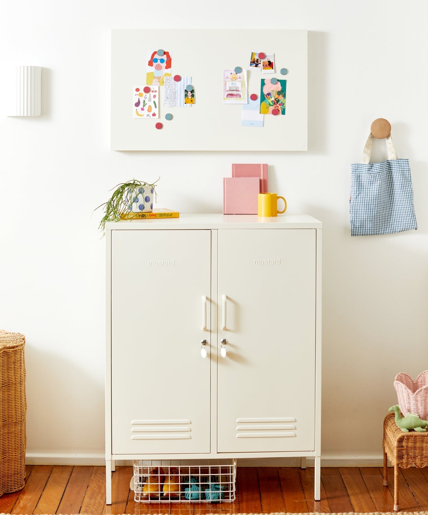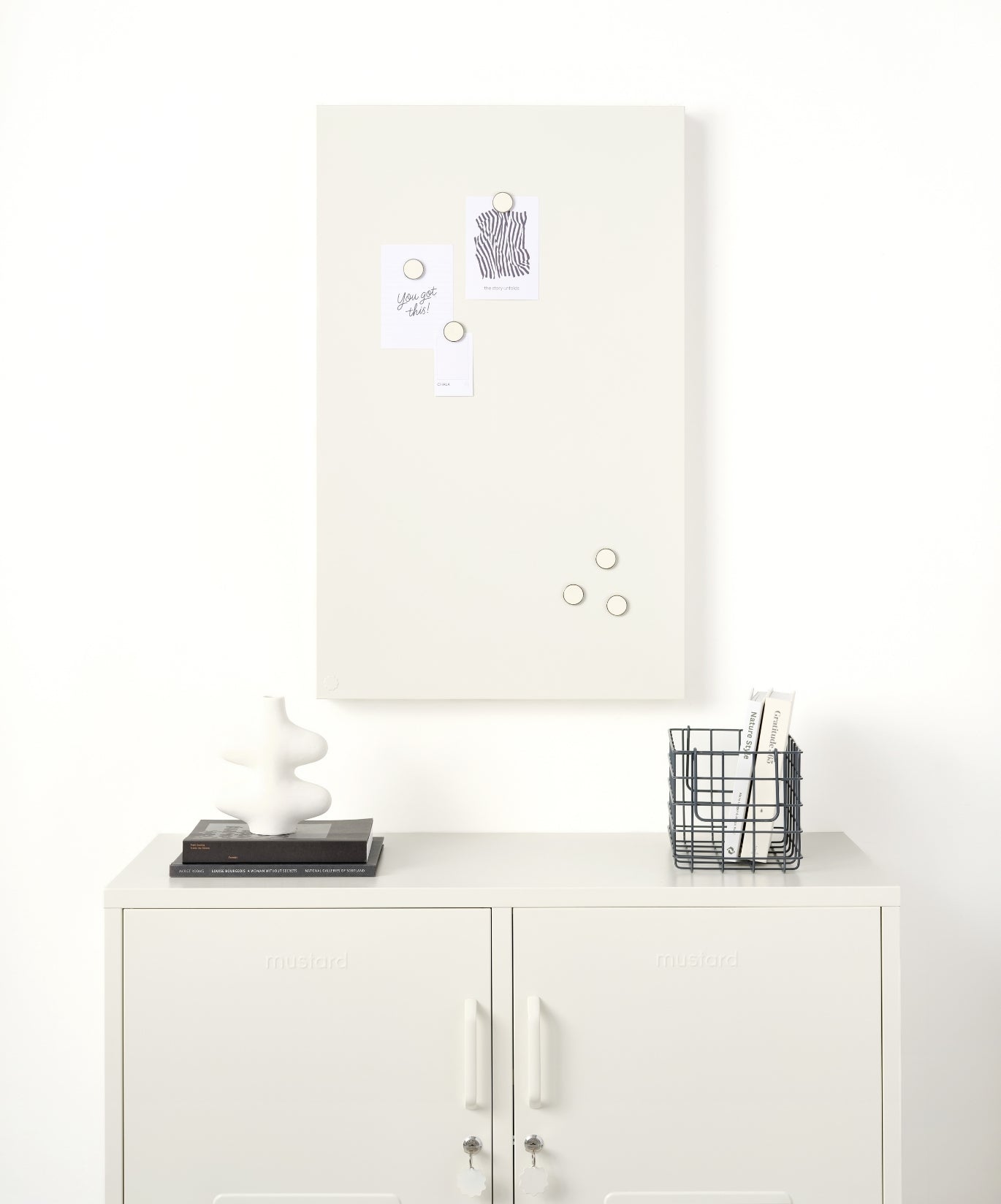 La superficie liscia e magnetica dello Storyboard è realizzata con lo stesso acciaio verniciato a polvere dei nostri armadietti. Può essere appeso in verticale o in orizzontale (come un'opera d'arte!) e viene fornito con il nostro medaglione Mustard in rilievo, per farvi capire che si tratta di un vero affare. La parte migliore? Non è necessario il montaggio!