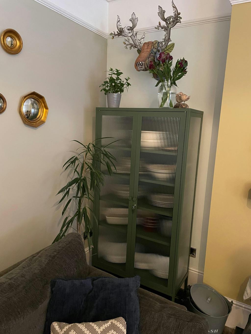 All'interno si trovano quattro ripiani regolabili, un chiavistello e una sottile scritta "mustard" in rilievo, per farvi capire che si tratta di un vero affare. All'esterno, i pannelli in vetro scanalato sono incastonati in una struttura metallica con maniglie a medaglione, una serratura, un portachiavi personalizzato in smalto Mustard e piedini regolabili. Gli schermi non sempre rendono giustizia ai nostri colori: ordinate un campione per vedere come appare nel vostro spazio.