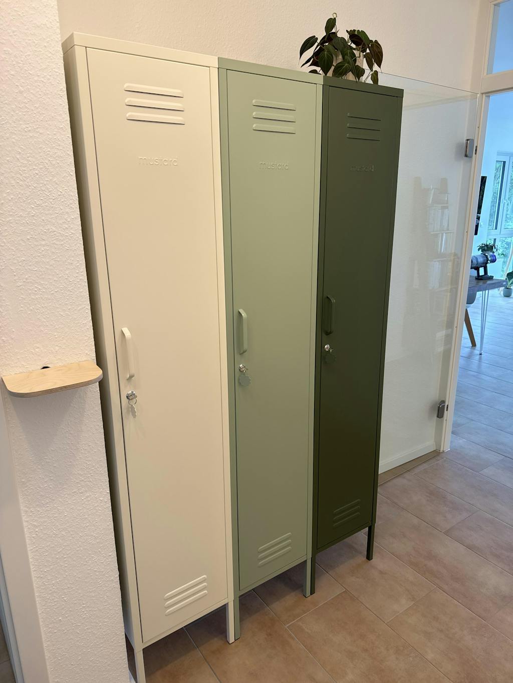 Inside, you'll find a removable hanging rail, four adjustable shelves and two handy hooks. On the outside, you'll find a handle, lock, custom keyring, air vents and a subtle embossed 'mustard', to let you know it's the real deal. Plus, the whole locker is smooth, matte and magnetic! Screens don't always do our colours justice — order a swatch to see how it looks in your space.
